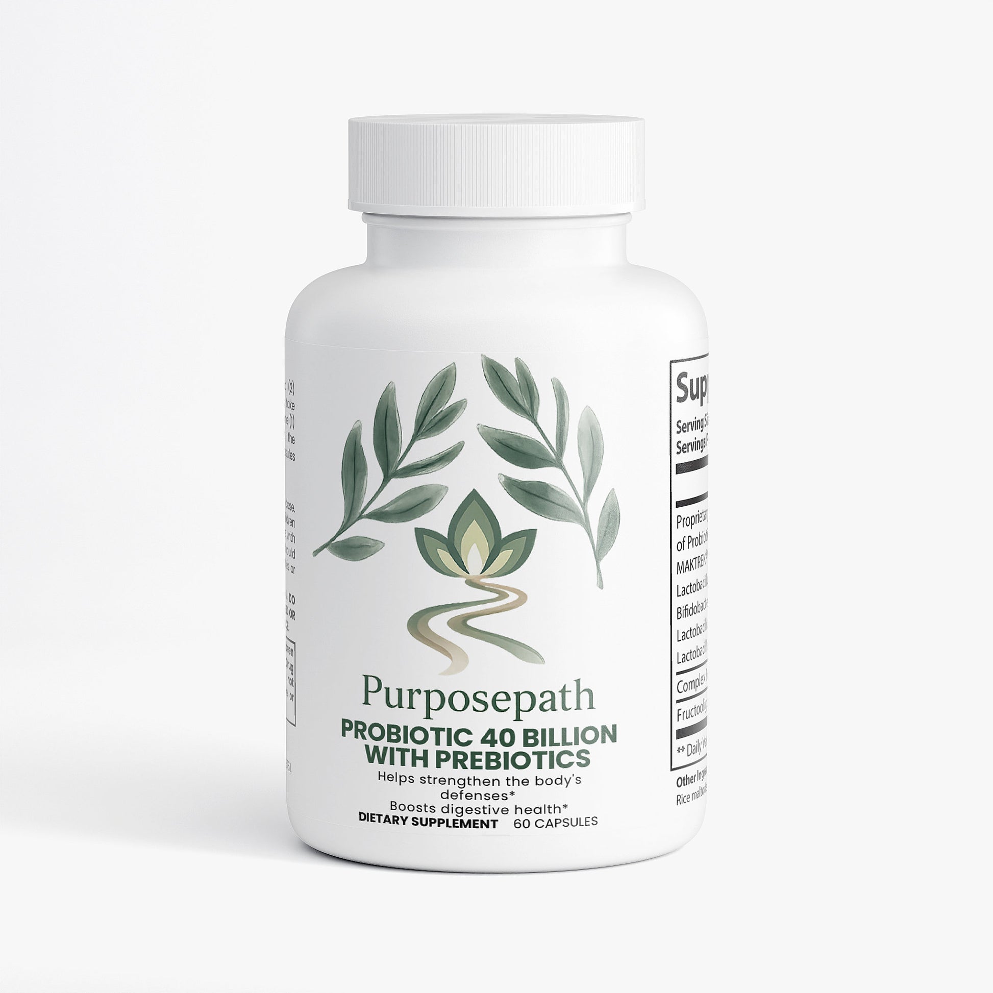 Probiotic 40 Billion with Prebiotics is a blend of four probiotic strains: Lactobacillus Acidophilus, Bifidobacterium Lactis, Lactobacillus Plantarum, and Lactobacillus Paracasei.